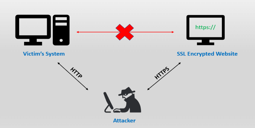 SSL stripping is a one of man in the middle attacks on a HTTPS connection. Most common method used for SSL stripping is creating a hotspot on attacking device. Many attackers establish fake hotspots with names like legitimate hotspot names, for example “McDonald’s WiFi” instead of “McDonald’s”. Unaware, the user connects to the malicious hotspot. Once the user connects to the server, the attacker uses his control over the hotspot and attacks the user. Attacker intercepts the HTTP requests from the user and convers them to HTTP S for the server, he is basically acting as a bridge between them. After a successful attack victim’s information is transferred in plain text format and can be easily intercepted by anyone, including the attacker.