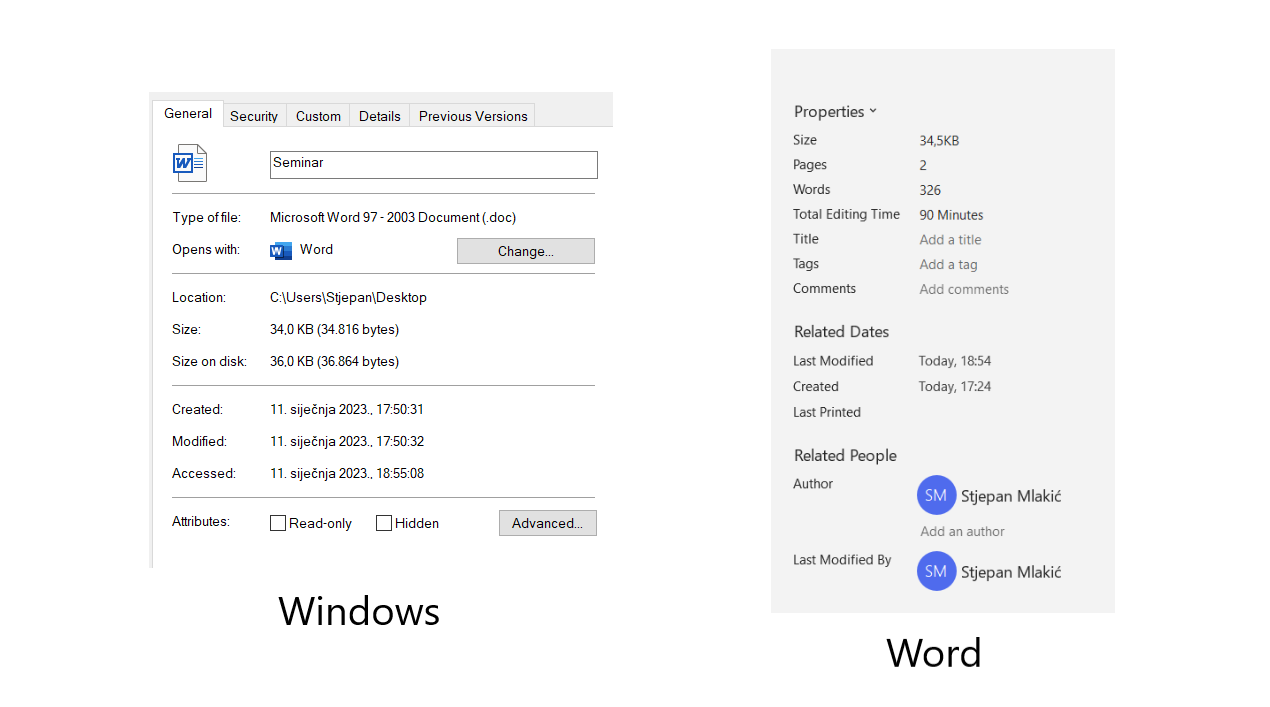 Ključne riječi: DOC, Word, analiza, forenzika, dokument, metapodatak