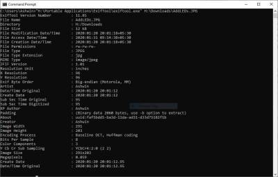 Slika 5: primjer alata za analizu metapodataka - ExifTool