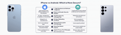 Ekosustav i fragmentacija iOS je dio vertikalno integriranog ekosustava u kojem jedan proizvođač (Apple) kontrolira hardver, operacijski sustav i veliki dio usluga. Zbog toga su sigurnosne značajke u pravilu konzistentnije među uređajima iste generacije. Android je otvoreniji ekosustav koji koriste različiti proizvođači, pa se sigurnosne značajke i brzina implementacije zakrpa mogu razlikovati ovisno o proizvođaču, modelu uređaja i verziji sustava.