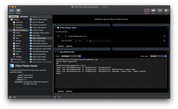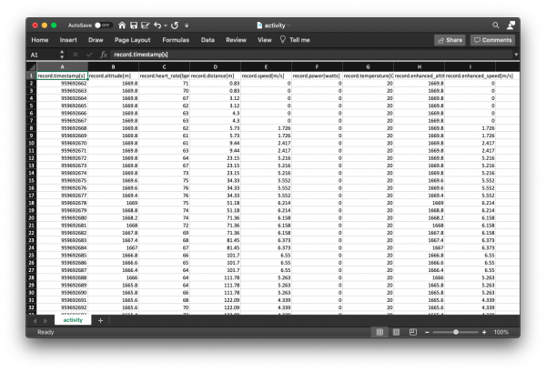 Garmin koristi malo drugačiji format zapisa podataka od Samsunga ili Applea. Kao što smo već prije spomenuli on ne koristi klasičnu bazu podataka već sve podatke, ovisno o vrsti sprema u zasebne .fit datoteke. Zato postoji Garminov službeni SDK (Software Development KIT) koji sadrži alat naziva FitCSVTool koji nam te .fit datoteke pretvara u čitljive CSV tablice. Ovo je jedini način da se podaci s Garmin sata pretvore u čitljivi format. Alat se koristi kroz terminal upisivanjem naredbe “java -jar FitCSVTool.jer monitoring_data.fit”. Slika ispod prikazuje korištenje alata. [8]