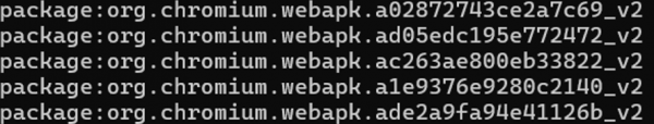 PS> adb shell pm list packages | Select-String webapk